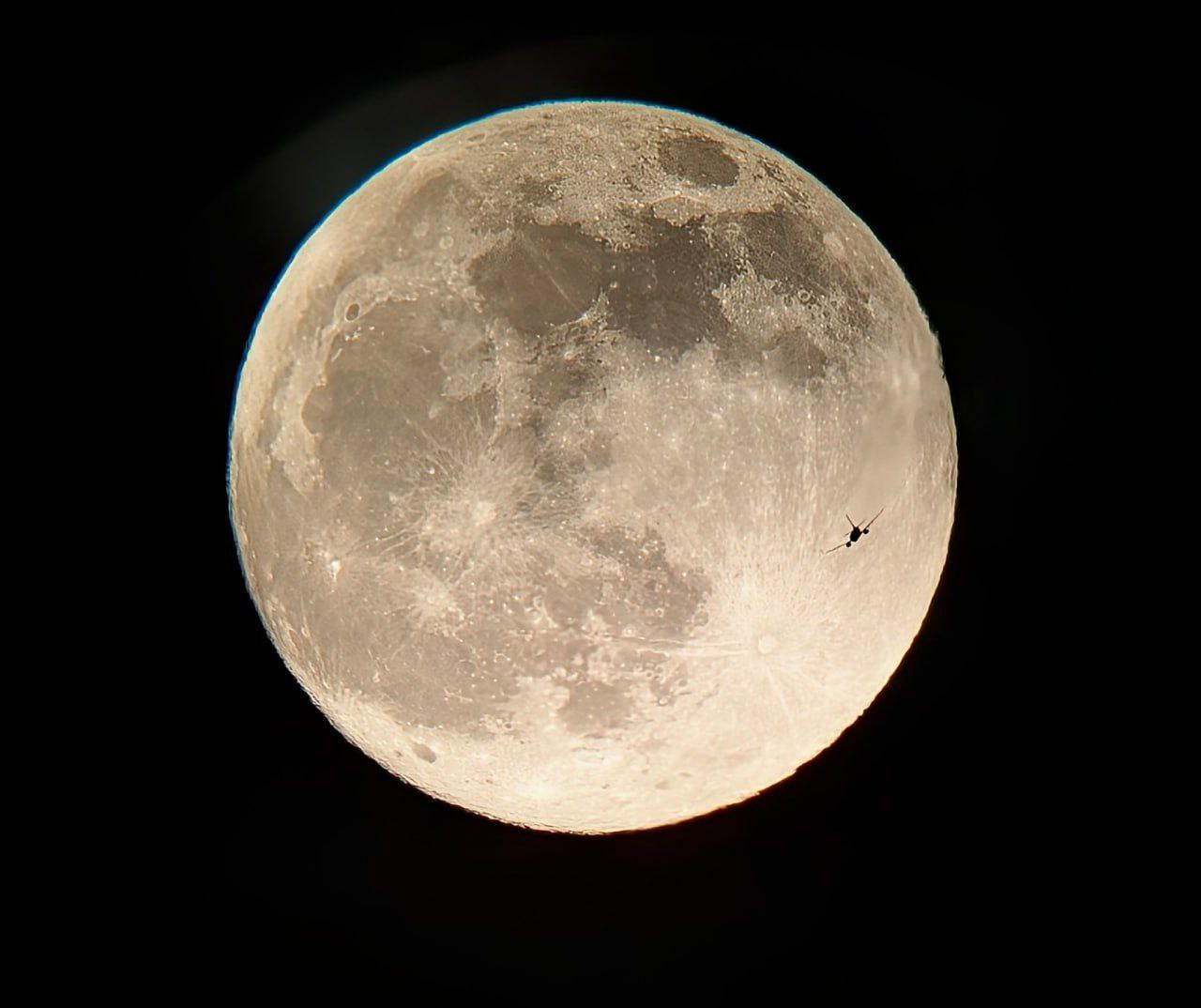 Одному из астрофотографов даже удалось запечатлеть на фоне Луны пролетающий самолёт.