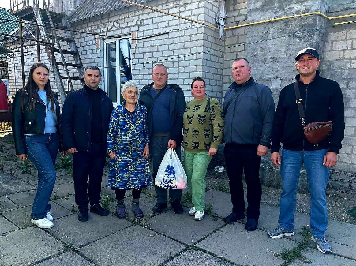 Председатель Васильевского окружного Совета депутатов Евгений Головань совместно с депутатами от партии «Единая Россия» Дмитрием Почерниным и Олегом Ковтун, главным специалистом территориального отдела населенных пунктов с. Первомайское и с. Шевченко Ириной Малакутой, главным специалистом территориального отдела села Скельки Денисом Навалихиным и главным специалистом отдела по вопросам внутренней политики Администрации Васильевского муниципального округа Евдокией Кумчик проведали одинокую пенсионерку в День Рождения Владимира Владимировича Путина.