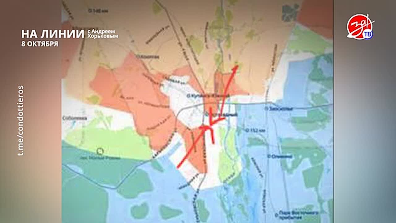 В Купянске, похоже, наступает переломный момент. Каналы сообщают о контроле российской армии практически над всем городом. Центр окружен, снабжения у противника там практически нет. ВСУ выходят группами в сторону Узловой, то есть на юг. К северу от Купянска в приграничной зоне освобождено село Отрадное. Минобороны распространило кадры водружения флага России. На харьковском направлении идут удары по тылам противника. В самом Харькове уничтожаем энергетику. Накануне насчитали более десятка ударов. Во многих регионах Украины ожидается трудная зима. Зеленский признал кризисную ситуацию с газодобывающими предприятиями и предупредил жителей страны, что надо быть готовыми ко всему.