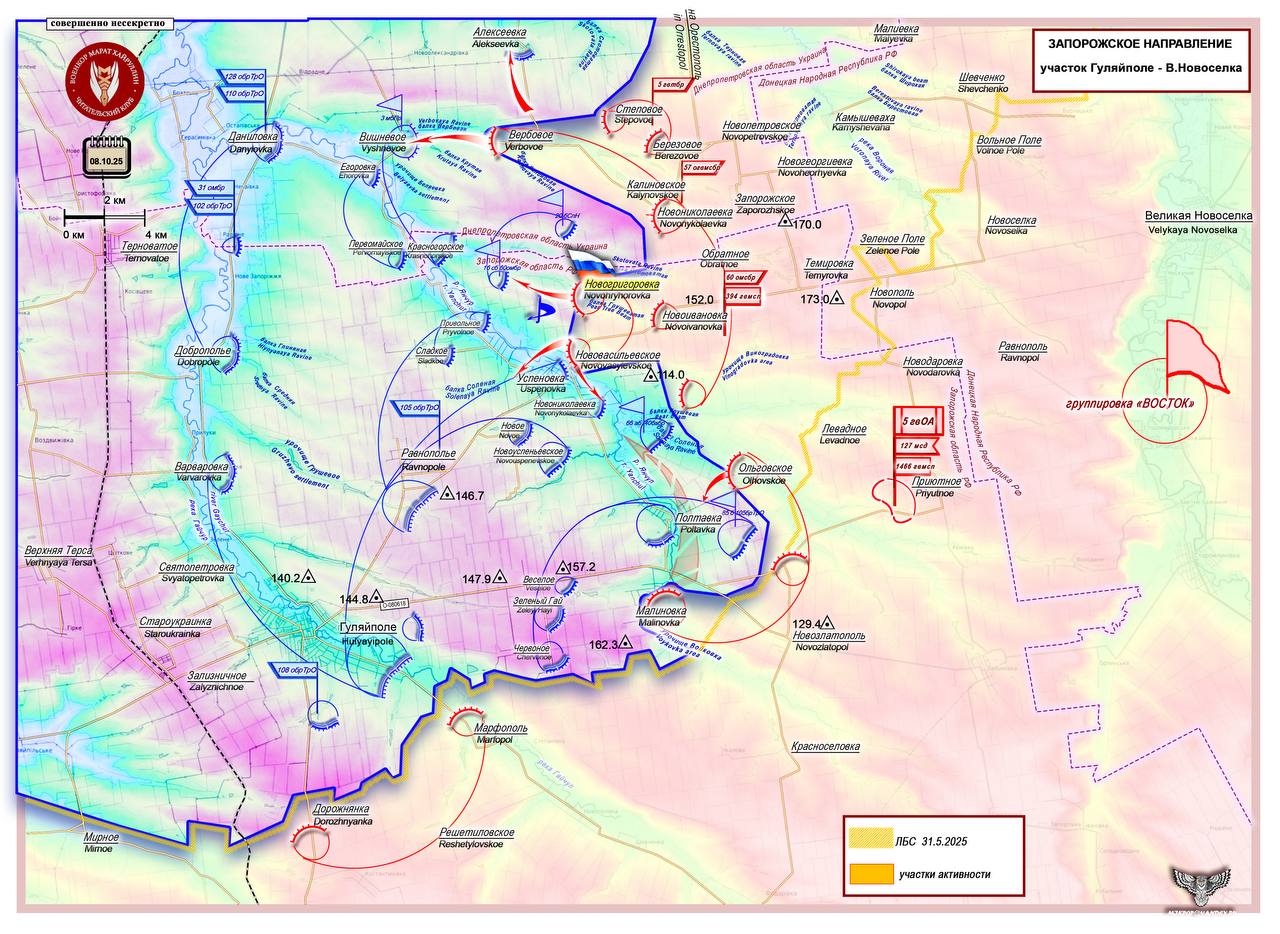 Эти действия сформируют глубокий охват узла обороны ВСУ Успеновка - Равнополье - Новоуспеньевское, перережут рокаду Покровское – Успеновка - Гуляйполе (рассекут оборону ВСУ на два участка) и создают условия для организации базового района Сладкое на водоразделе р. Янчур и Гайчур.