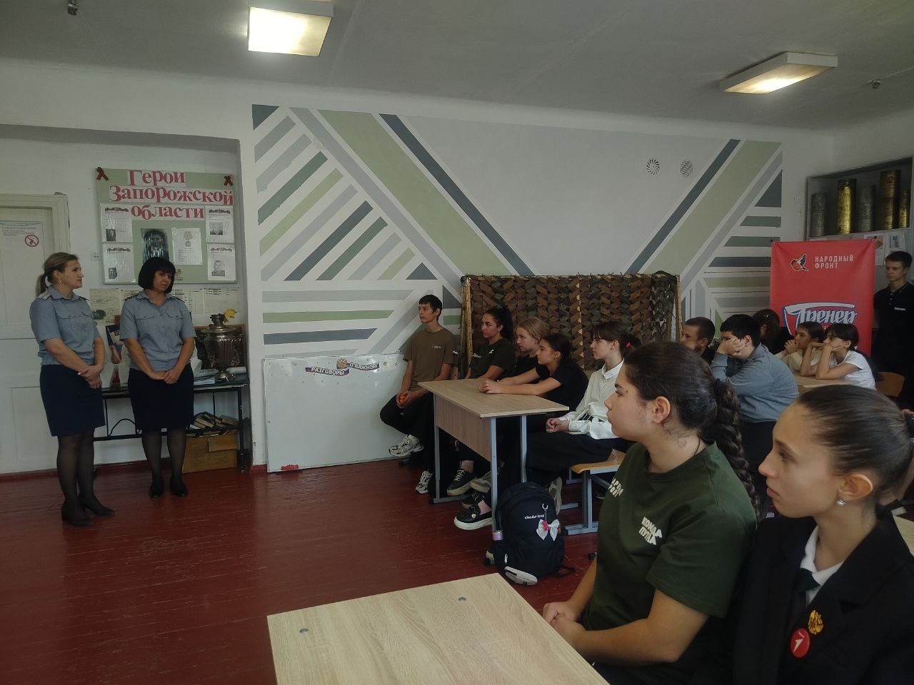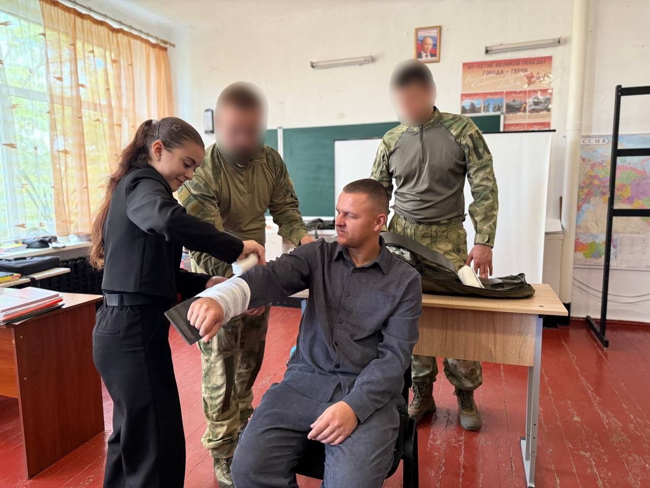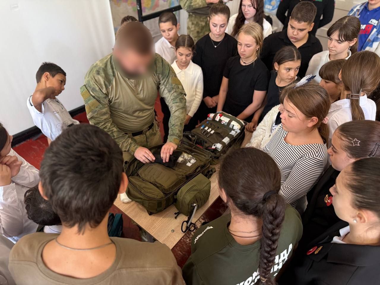 При общем взаимодействии Администрации школы с военнослужащими, сотрудниками ФСИН, активистами "Молодой Гвардии", "Народного фронта", "ЮгМолодой" организован мастер-класс на "Уроке Мужества".