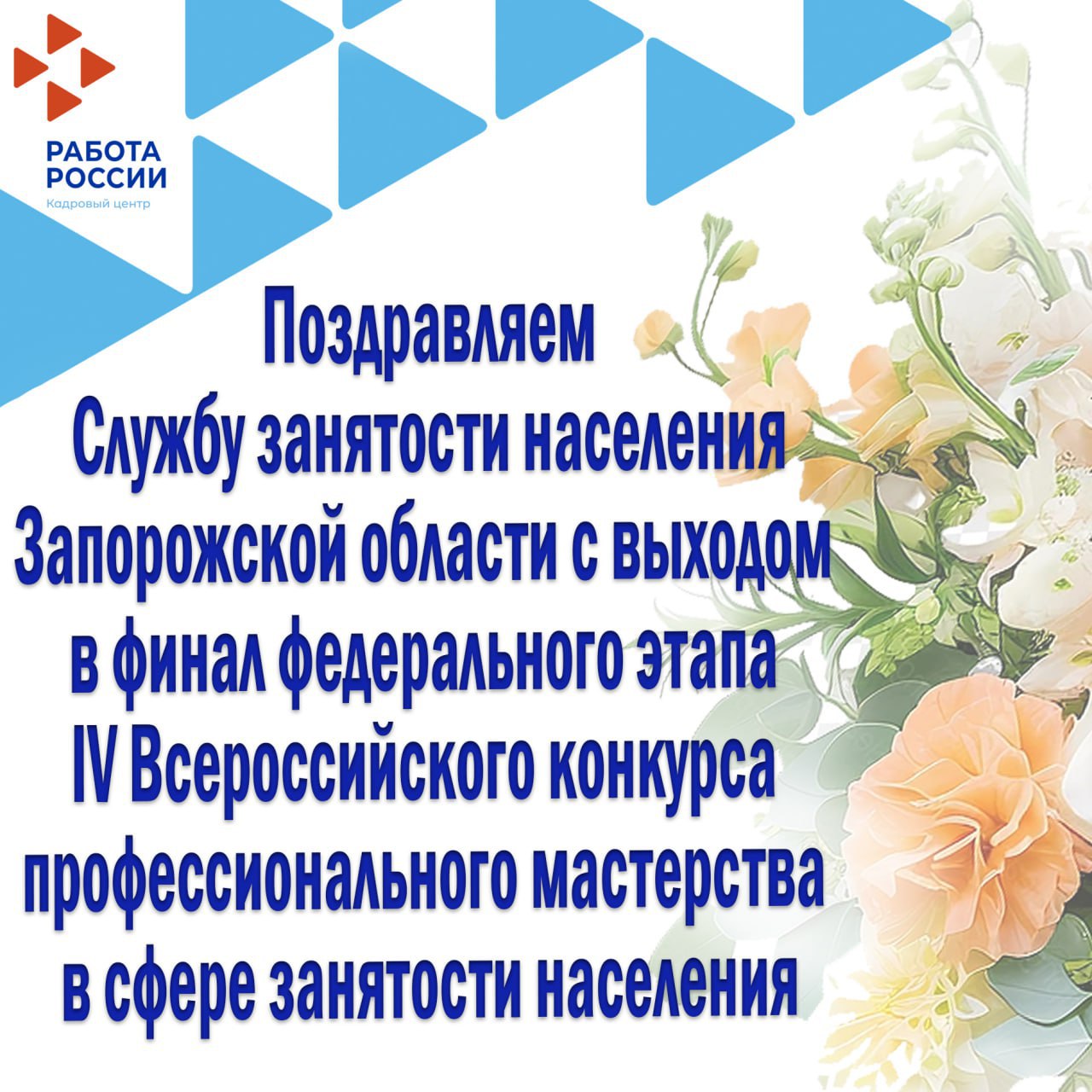 Поздравляем Службу занятости населения Запорожской области с выходом в финал федерального этапа IV Всероссийского конкурса профессионального мастерства в сфере занятости населения в номинации «Лучший проект кадрового центра «Работа России» в категории «Кадровый центр: преодолеем преграды вместе»!
