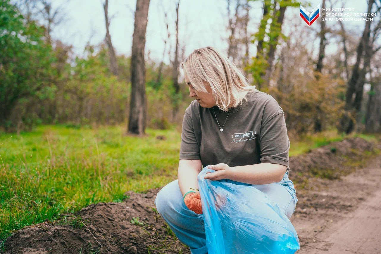 Активисты регионального штаба #МЫВМЕСТЕ совместно с руководителем Ресурсного центра добровольчества Максимом Шереметьевым приняли участие в субботнике в лесопарке города Мелитополь.