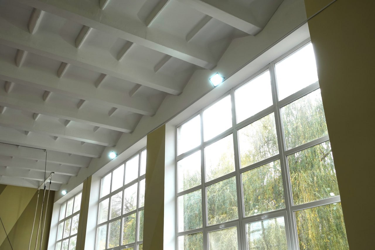 При участии специалистов аварийно-восстановительной бригады региона-шефа в зале акробатики заменены оконные и дверные блоки, приведены в нормативное состояние инженерные сети, обустроены внутренние помещения. Для равномерного прогревания пространства смонтировано 19 современных радиаторов.