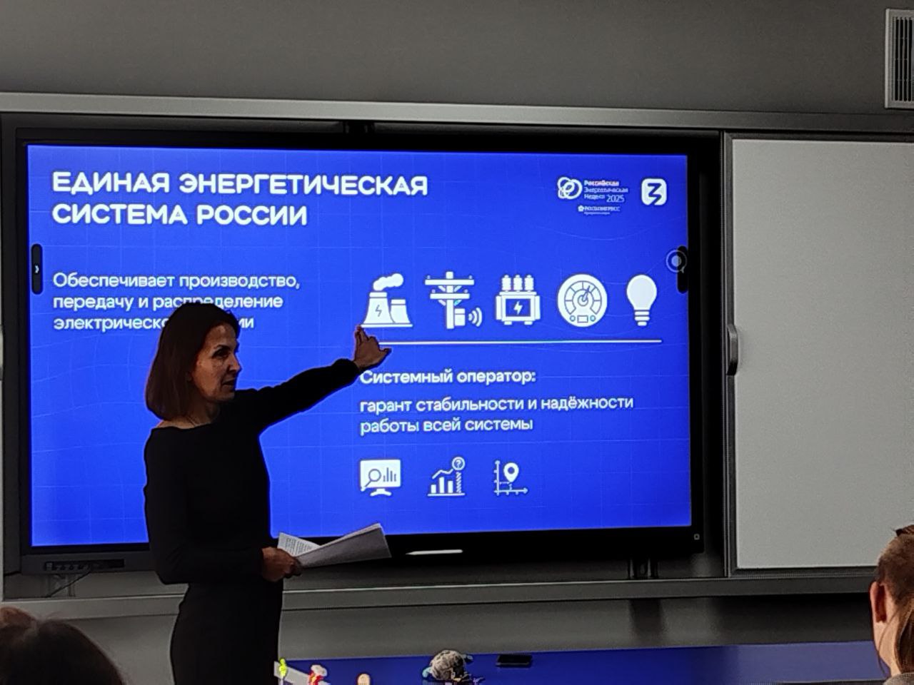 В ходе урока учащиеся узнали о различных видах энергии и их применении, о перспективных направлениях развития отрасли, включая возобновляемые источники энергии и технологии энергосбережения, а также о ключевой роли специалистов-энергетиков в обеспечении энергетической безопасности региона.