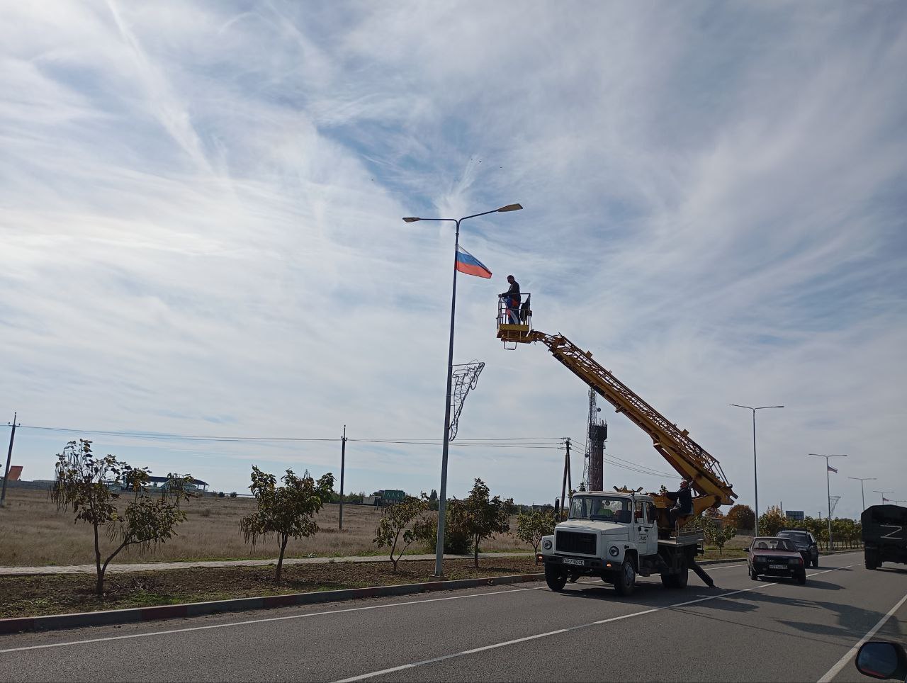 Выкосили большой участок земли с травой по улице Юбилейной, собрали мусор вдоль прибрежной зоны по Федотовой косе, а также произвели замену изношенных полотнищ флагов на новые.