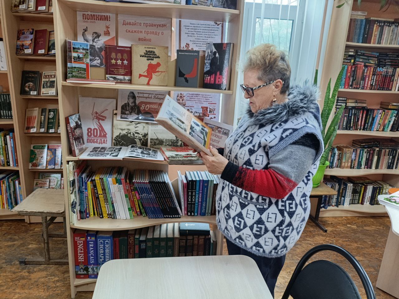 Ко Дню освобождения Запорожской области от немецко-фашистских захватчиков в Молочанской городской библиотеке-филиале оформлена книжная полка «Давайте правнукам скажем правду о войне»