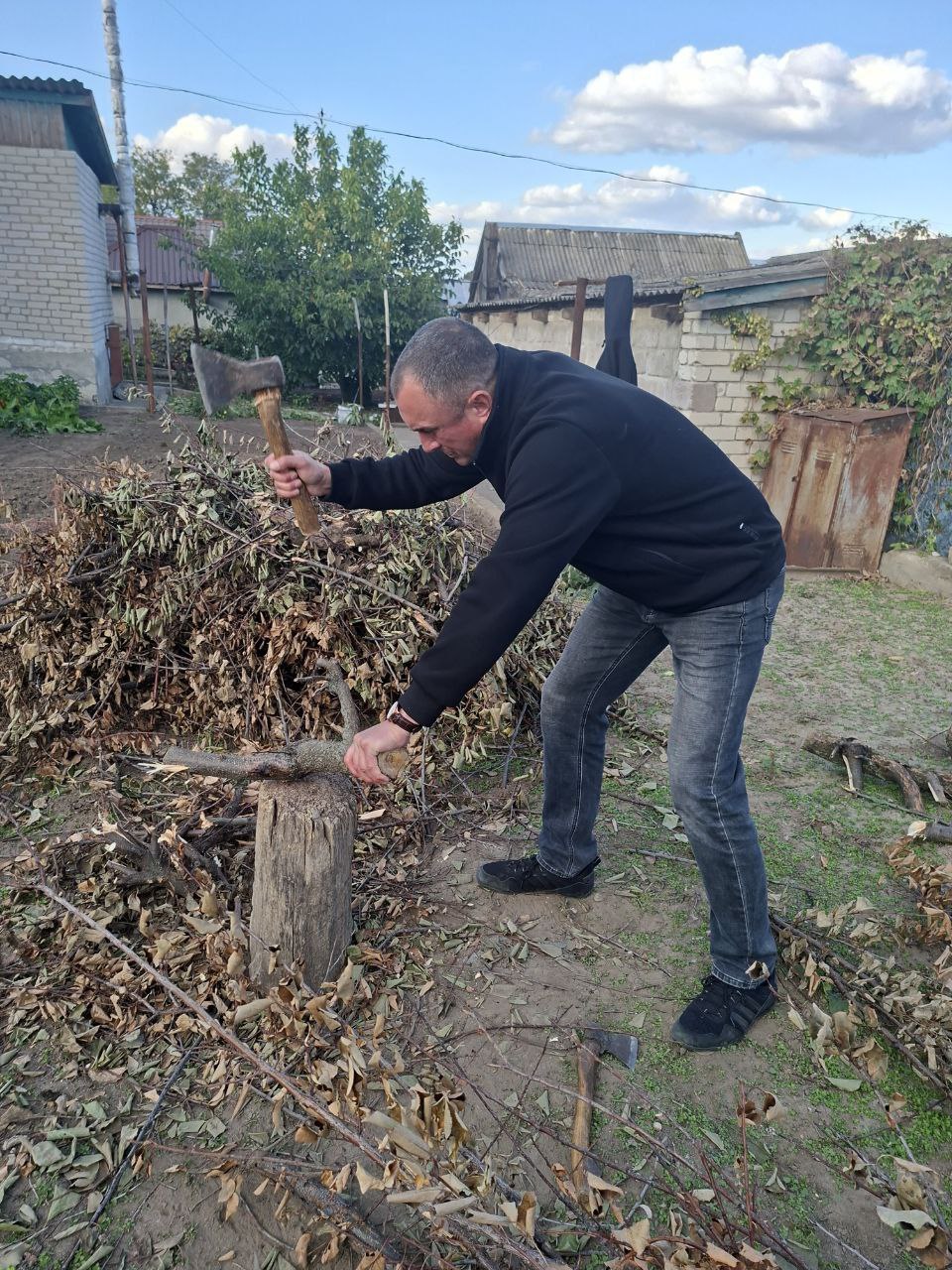 Единороссы с удовольствием помогли Николаю Сергеевичу по хозяйству, нарубили дров, подготовили к зиме бак с водой, перекопали огород и навели порядок в саду. Также убрали в хозяйственной постройке.