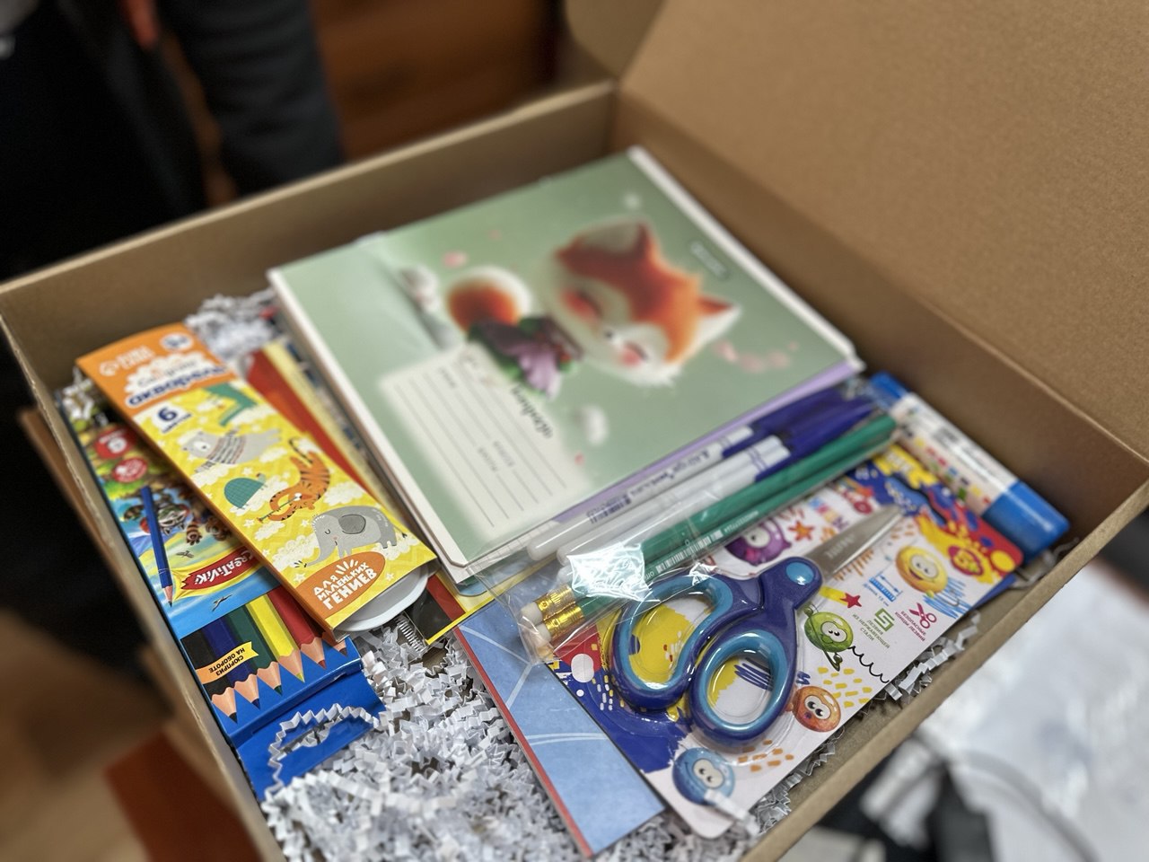 Начальник отдела по вопросам внутренней политики Ксения Богославская передала канцелярские наборы главному специалисту территориального отдела села Скельки Денису Навалихину. А он, в свою очередь, доставил подарки непосредственно в семью.