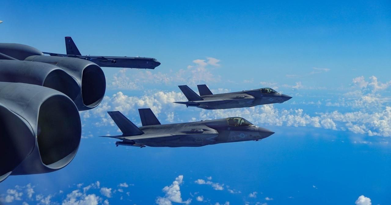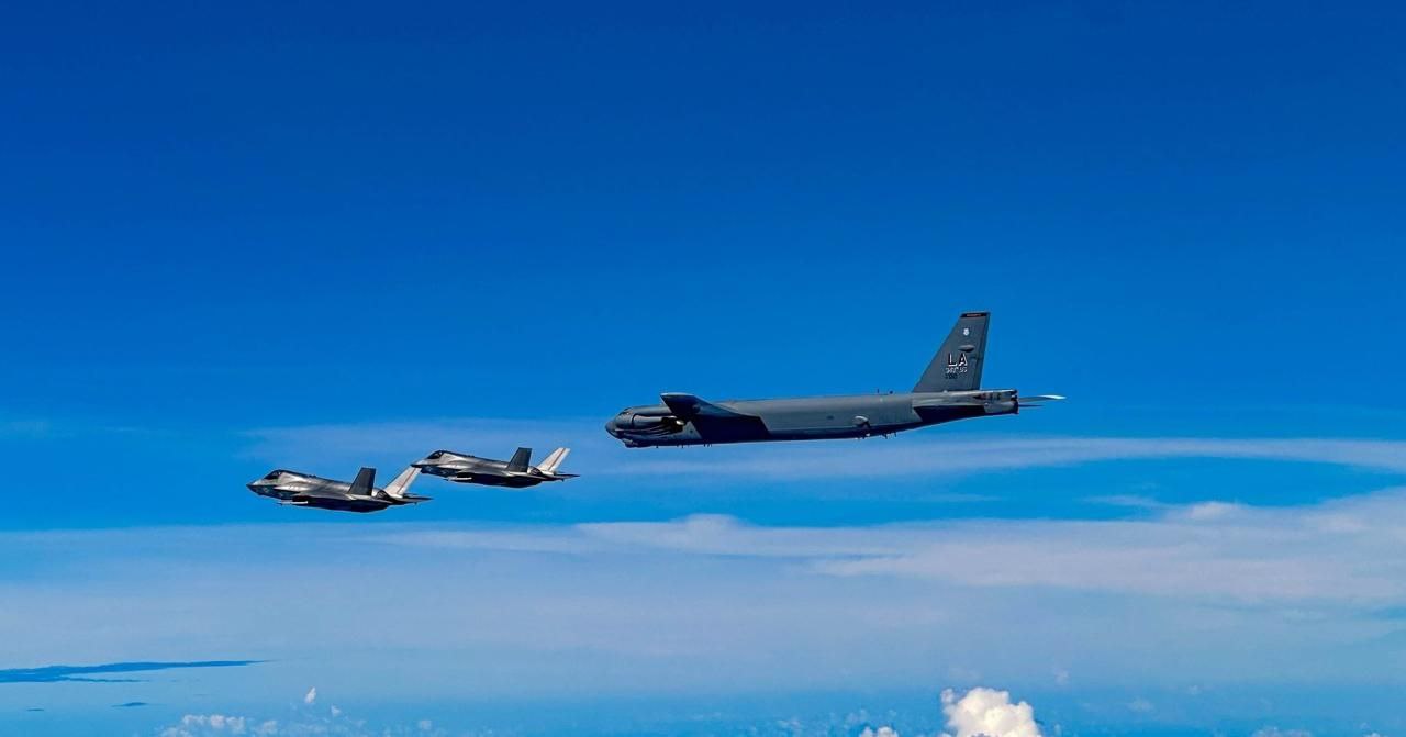Действовали "стратеги" в сопровождении истребителей пятого поколения F-35B Lightning II Корпуса морской пехоты США с базы в Пуэрто-Рико.