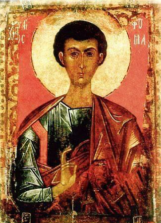 По преданию, после Пятидесятницы, когда апостолы бросали жребий, кому в какой стране проповедовать, Фоме выпали самые дальние земли - Индия. Он стал просветителем этой далекой страны, основав там первые христианские общины (потомки которых известны как «христиане апостола Фомы» и по сей день живут в Индии). Он бесстрашно нес слово Божие, совершал чудеса, крестил тысячи людей, от простолюдинов до членов царских семей. Его пламенная проповедь вызвала гнев местных языческих жрецов. За отказ поклониться идолам и за обращение в христианство сына и супруги правителя города Мелипура, апостол Фома был схвачен, претерпел жестокие пытки и принял мученическую кончину - его пронзили пятью копьями.