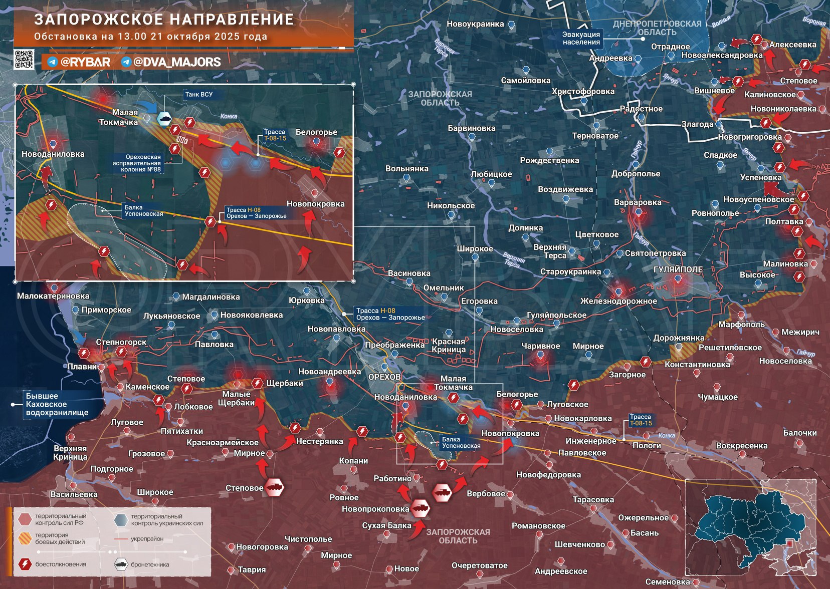 На Запорожском направлении российские войска перешли в наступление у Малой Токмачки. Вечером понедельника 20 октября поступили сообщения о массированной атаке ВС РФ несколькими колоннами бронетехники сразу на трех направлениях.