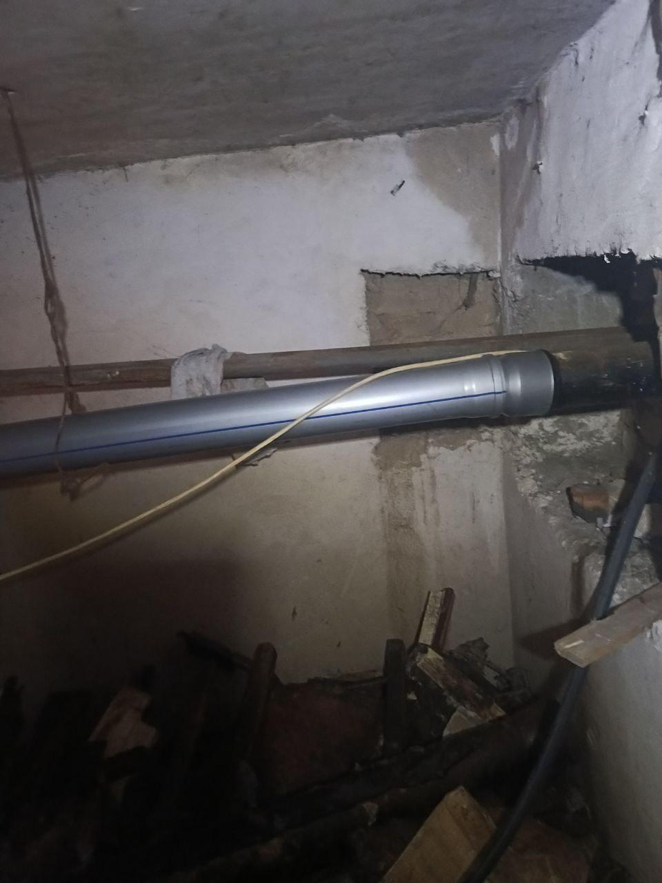 Работники МУБ «Благоустройство-Васильевка» произвели замену обветшавшей трубы слива канализации в доме № 8 по улице 40 лет Победы города Васильевка