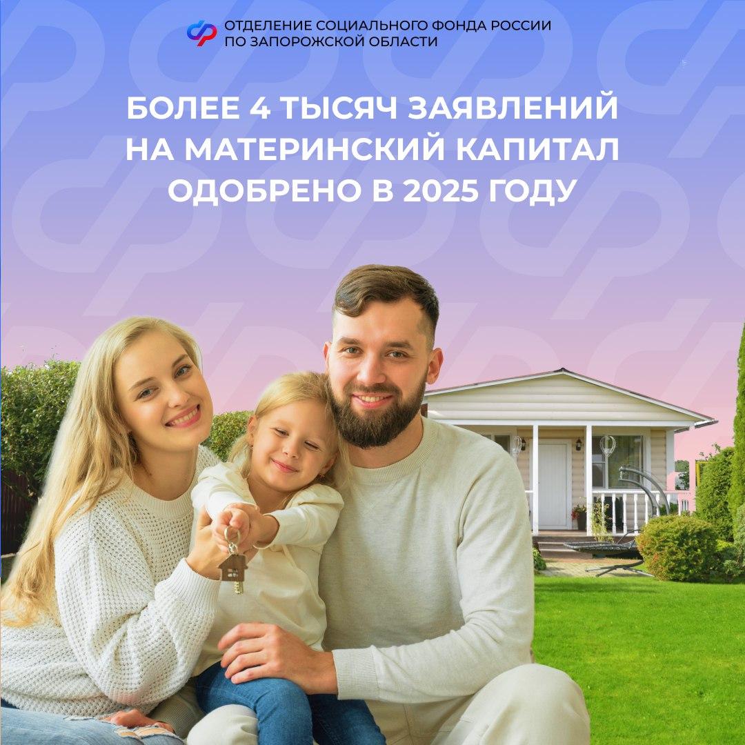 С начала 2025 года Отделение СФР по Запорожской области одобрило семьям региона 4226 заявлений о распоряжении средствами материнского капитала.