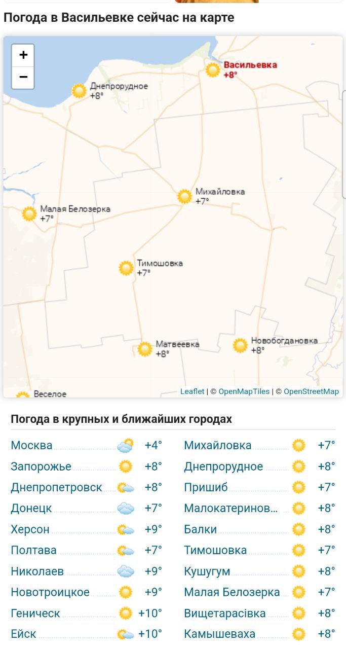 Погода 22 октября 2025 года в крупных и ближайших к Васильевке городах и населённых пунктах