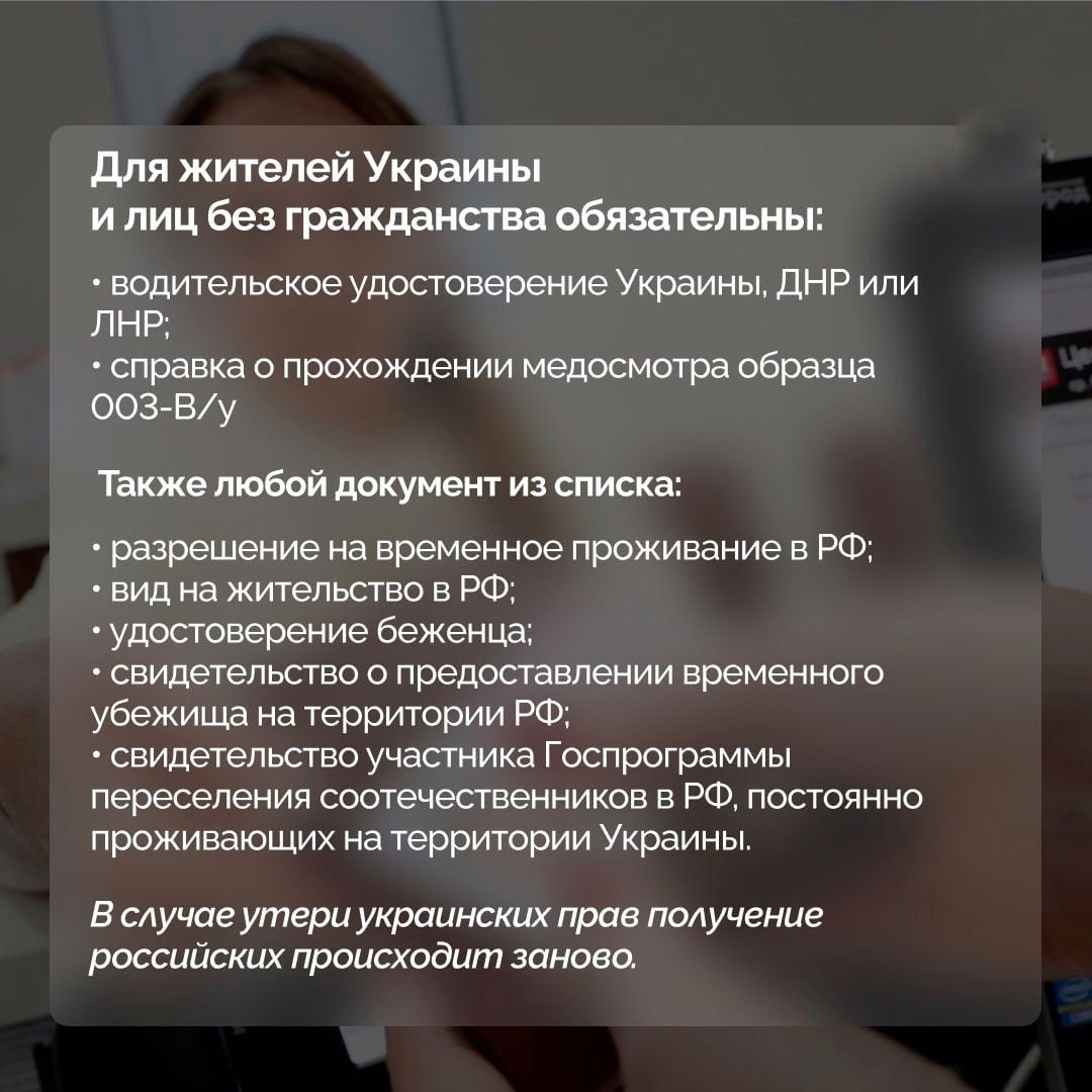 В карточках можно ознакомиться с необходимыми документами для получения водительского удостоверения российского образца.