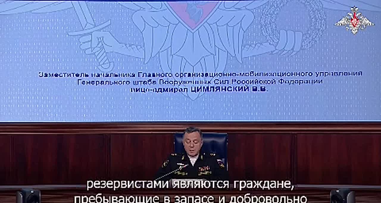 Резервистов будут направлять на специальные сборы на основании указа президента России. Об этом заявил заместитель начальника Главного организационно-мобилизационного управления Генштаба ВС РФ вице-адмирал Владимир Цимлянский.