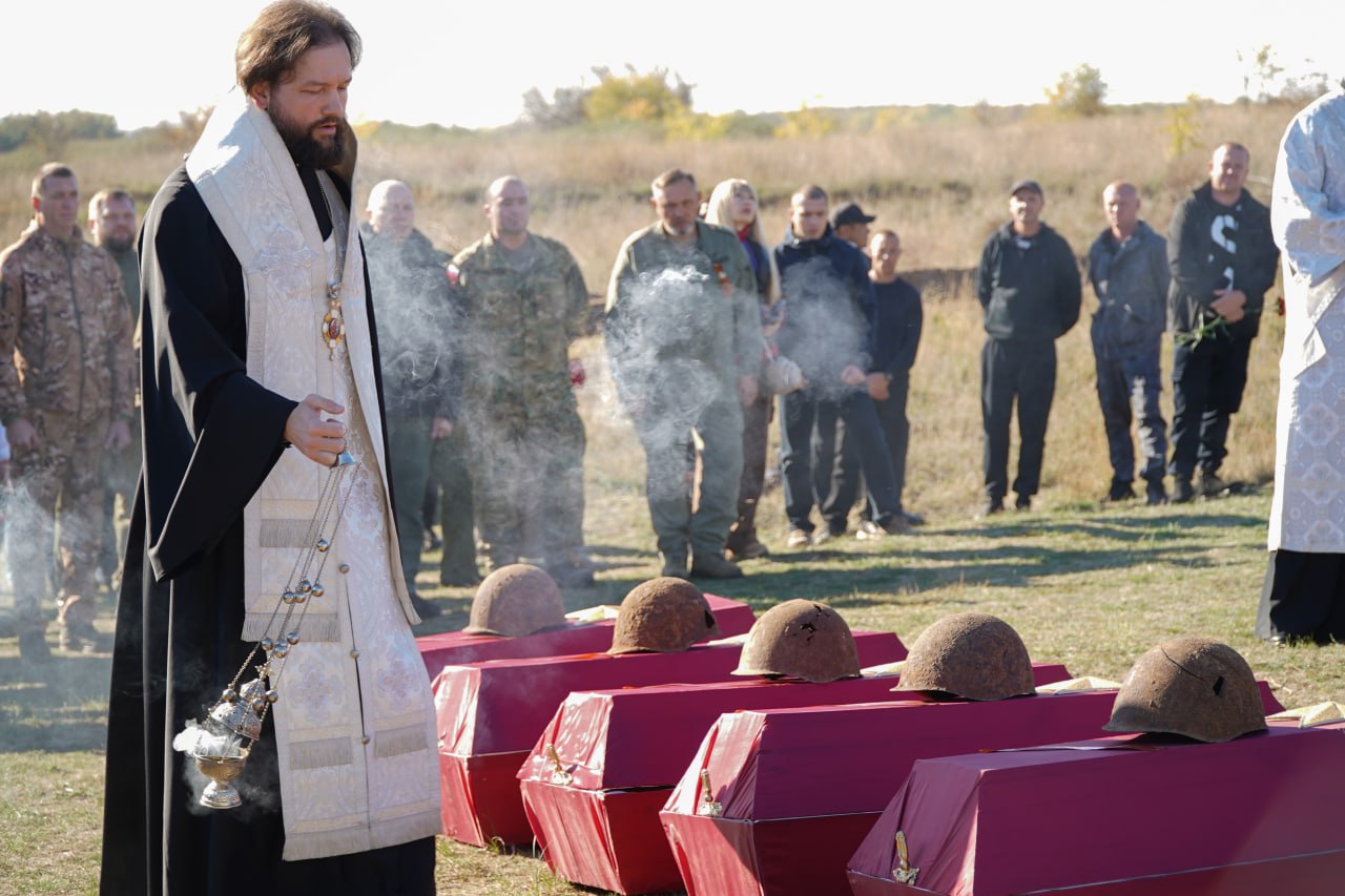 В результате совместной работы мелитопольского историко-патриотического общества «Победитель», Следственного управления Следственного комитета Российской Федерации по Запорожской области и отделения розыска тел погибших военнослужащих военной комендатуры Запорожской области были обнаружены и подняты останки десяти советских солдат. Сегодня мы отдаём последние воинские почести погибшим героям.