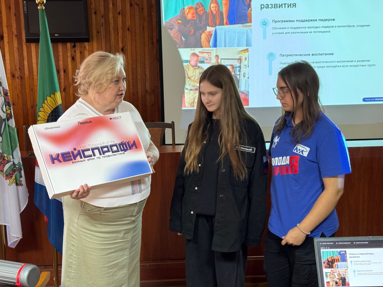 В знак дружбы и поддержки, Ольга Безельт подарила игру «Кейспрофи» от Движения Первых Томской области – интерактивный инструмент для профилактики деструктивного поведения!