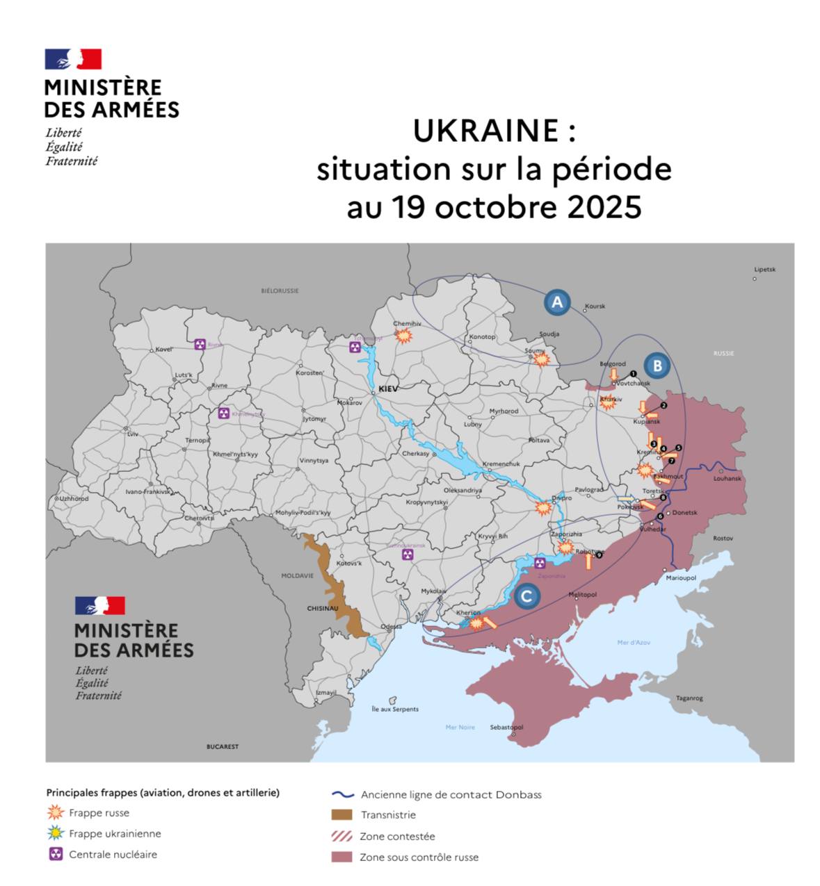 Оперативная обстановка к 19 октября по версии министерства обороны Франции. Общая ситуация:
