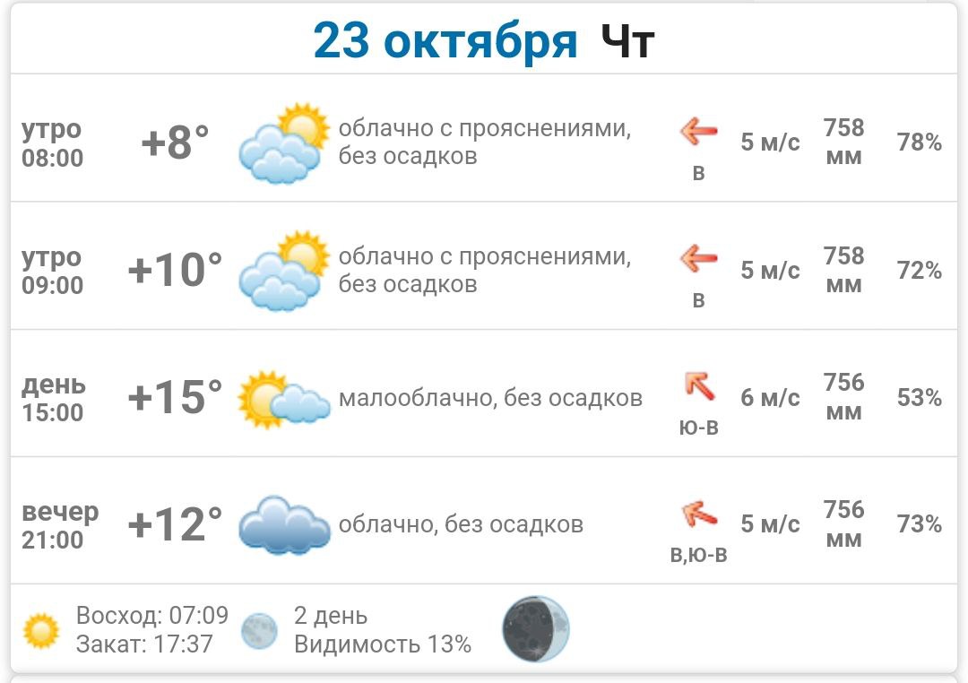 Подробно о погоде в Васильевке 23 октября 2025 года