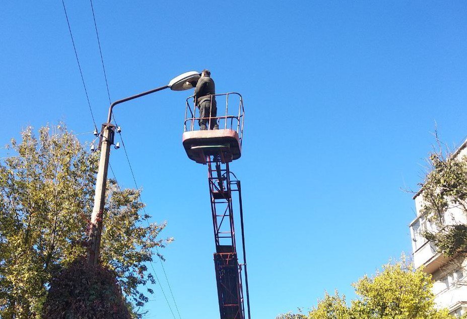 Коммунальщики восстанавливают уличное освещение на территории города Токмак