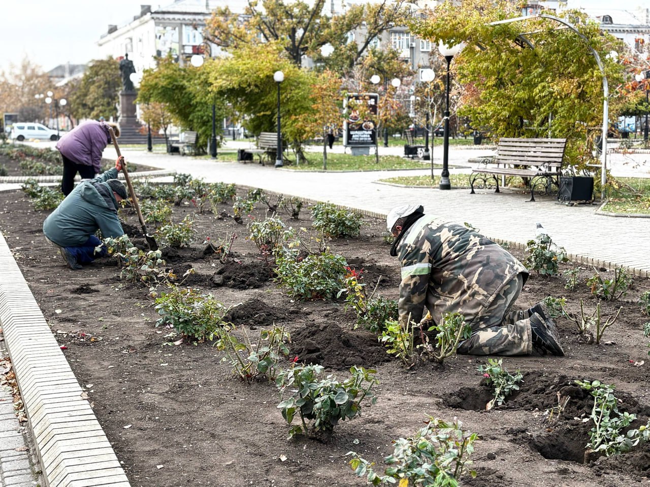 Работники «Зеленхоза» высадили в центре Бердянска 300 кустов роз