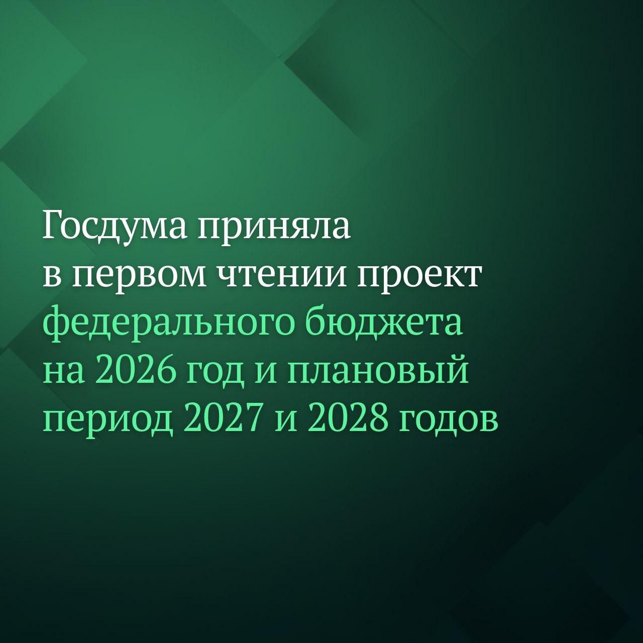 Госдума приняла в первом чтении проект федерального бюджета на 2026 год и плановый период 2027 и 2028 годов