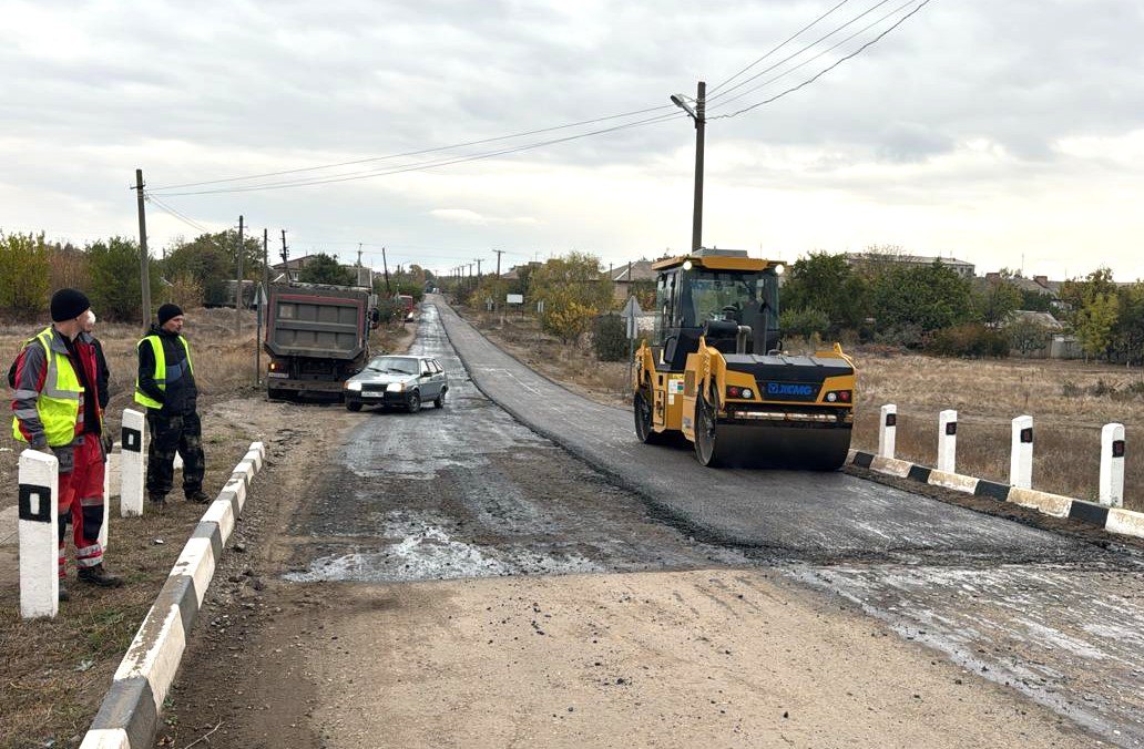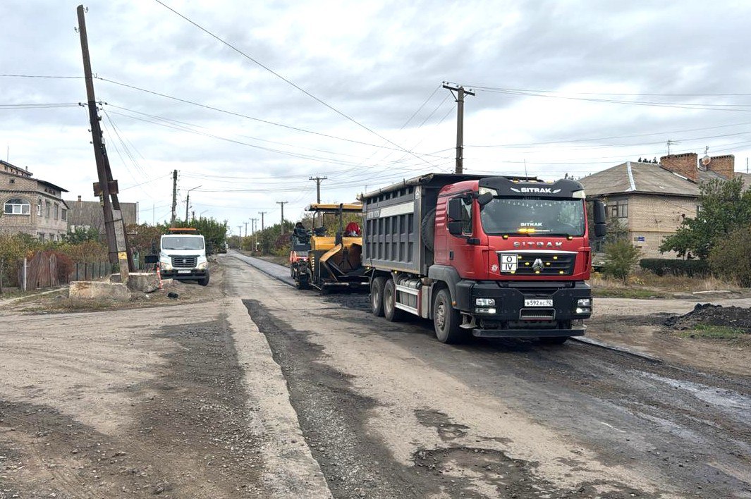 Бригада из Ингушетии ремонтирует дорогу на улице Вокзальная в Молочанске