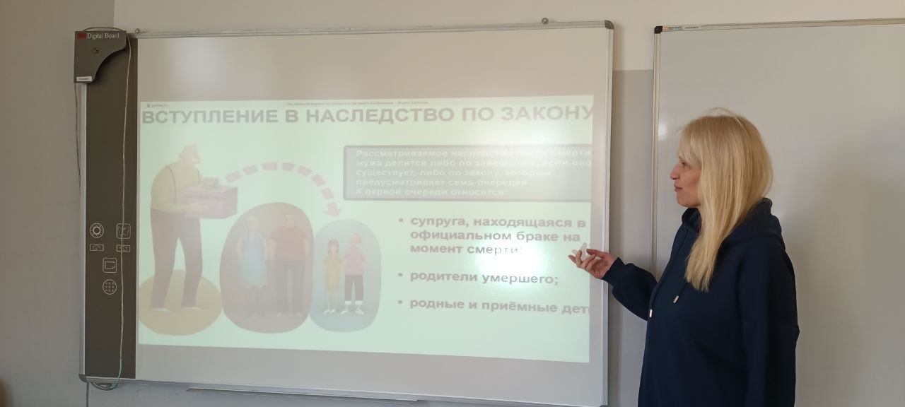 На занятии присутствующие познакомились с основными видами наследования имущества. Узнали о необходимости своевременного оформления финансовой документации, какое имущество подлежит наследованию и в какой форме облагается налогом. Так же участникам был предложен интерактивный опрос, целью которого стало закрепление полученных знаний на практике.