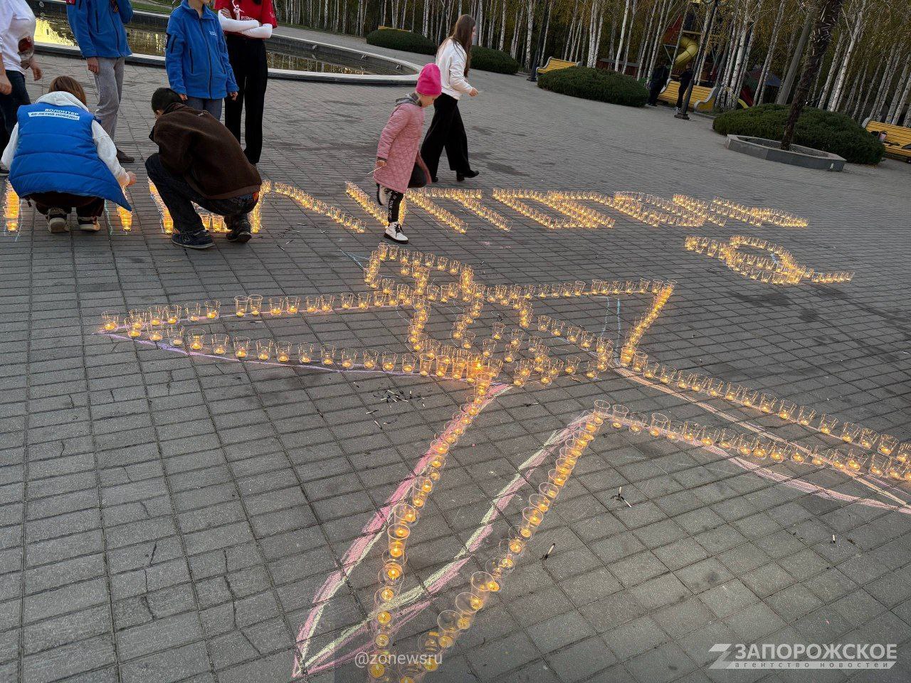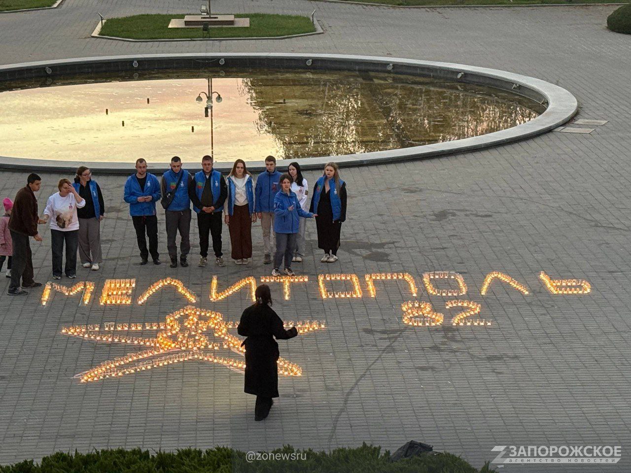 В канун 82-й годовщины освобождения Мелитополя от немецко-фашистских захватчиков молодёжные активисты выложили из тысячи свечей огненную надпись "Мелитополь 82". Акция объединила "Волонтёров Победы", "Волонтёрскую Роту Боевого Братства" и "Волонтёров-медиков", почтивших память бойцов Красной Армии.