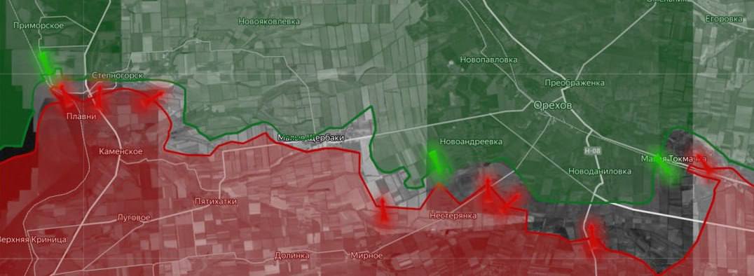 «На Запорожском направлении ВС РФ продолжают штурм населенных пунктов Приморское и Степногорск. Фиксируется продвижение российских войск в районах Новоданиловки и Нестерянки»