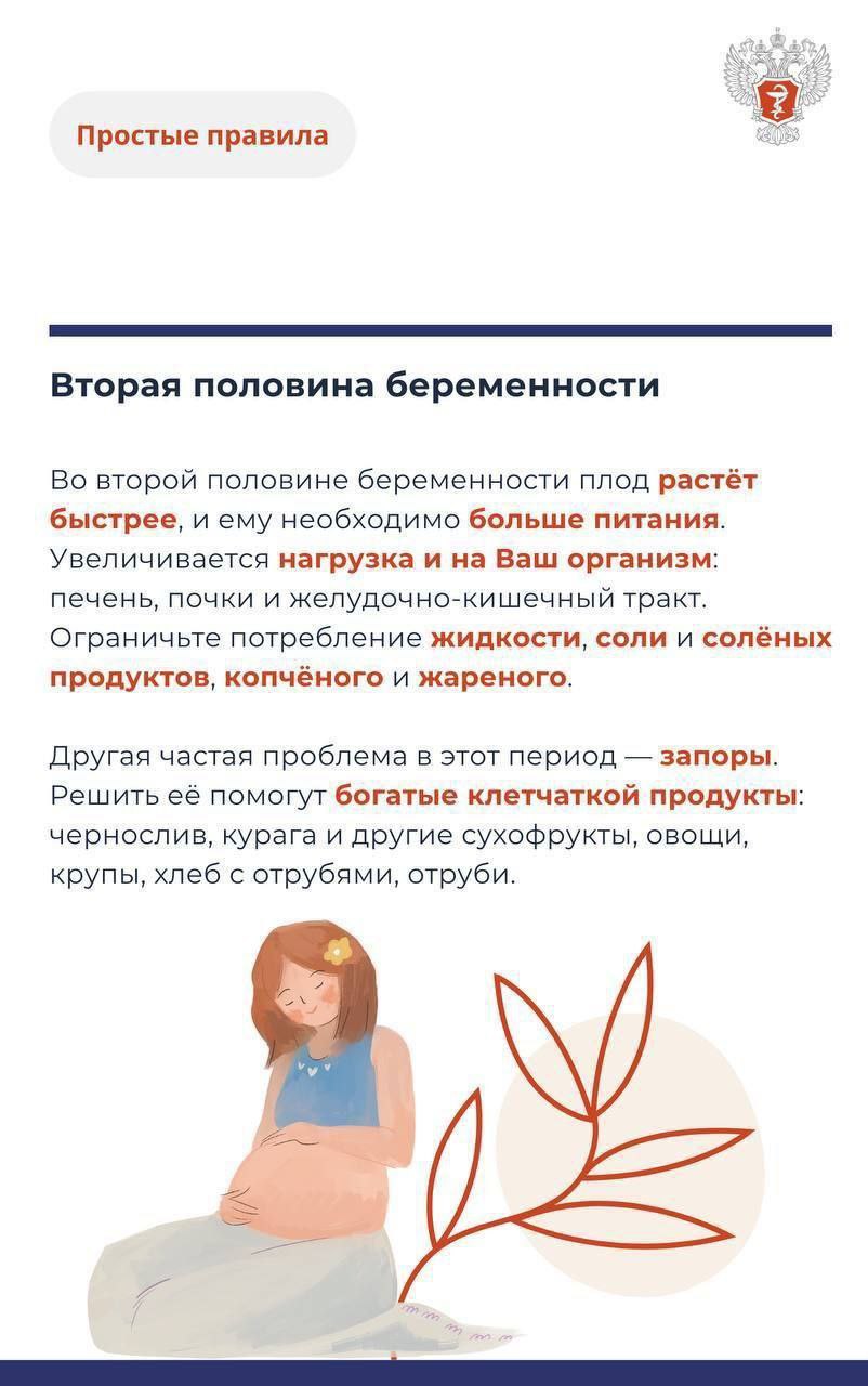 Подробнее о правильном рационе питания во время беременности читайте в карточках Минздрава