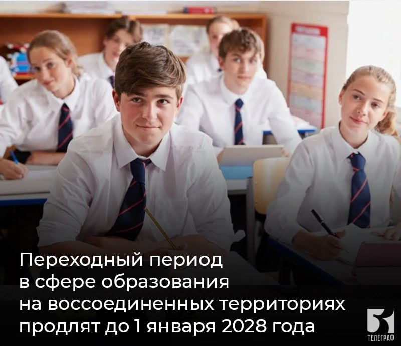 Переходный период в сфере образования на воссоединенных территориях продлят до 1 января 2028 года.