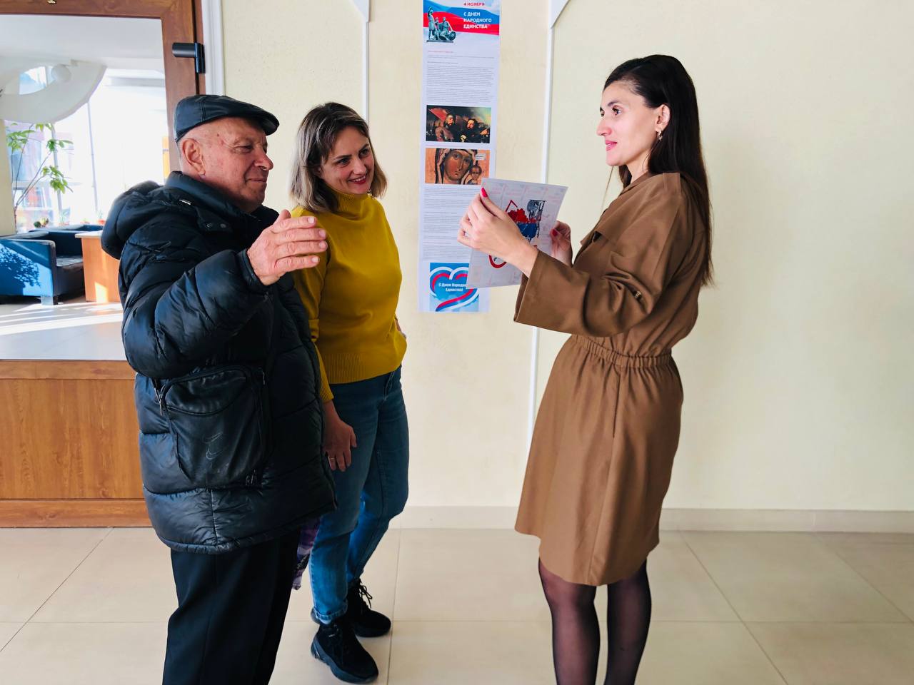 Сотрудники ЗАГСа не только раздают красочные буклеты, но и с энтузиазмом рассказывают об истории Дня народного единства.