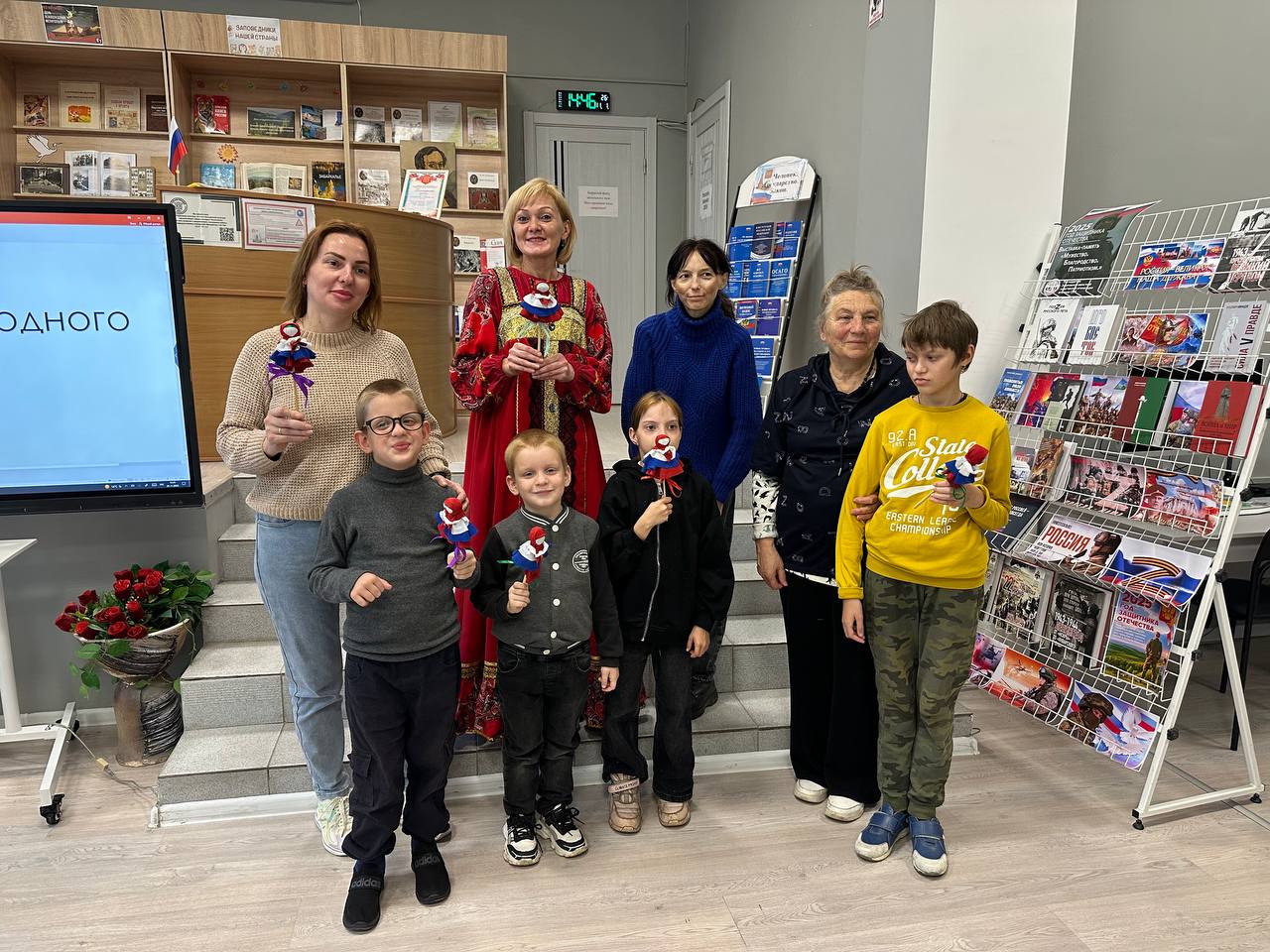 Участники просмотрели презентацию, из которой узнали об исторических событиях, связанных с Днем народного единства. В рамках мероприятия прошел мастер-класс по изготовлению праздничной символики.