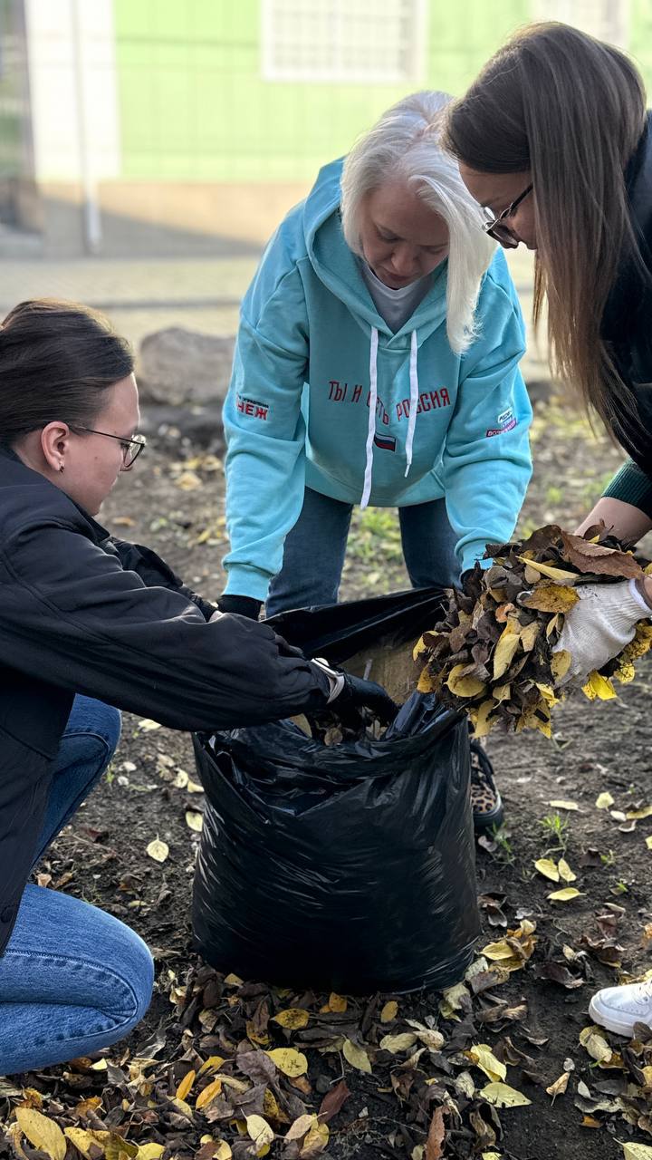 В ходе мероприятия участники очистили территорию, прилегающую к организации от листьев и лишнего мусора. Теплая погода придавала участникам силы и хорошее настроение.