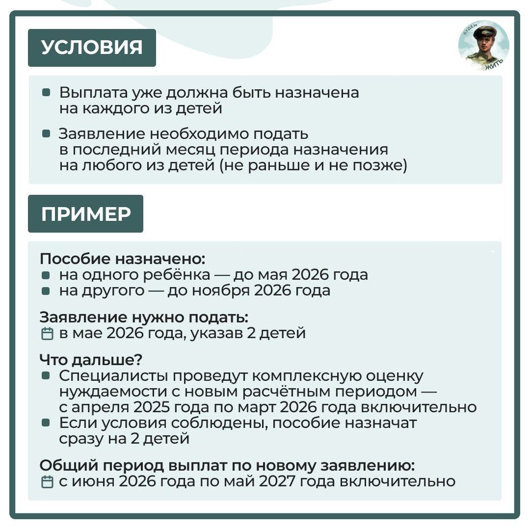Чтобы получать ЕП на всех детей одновременно, в Соцфонд России необходимо подать соответствующее заявление в последний месяц периода, на который установлена выплата на любого ребёнка в семье.