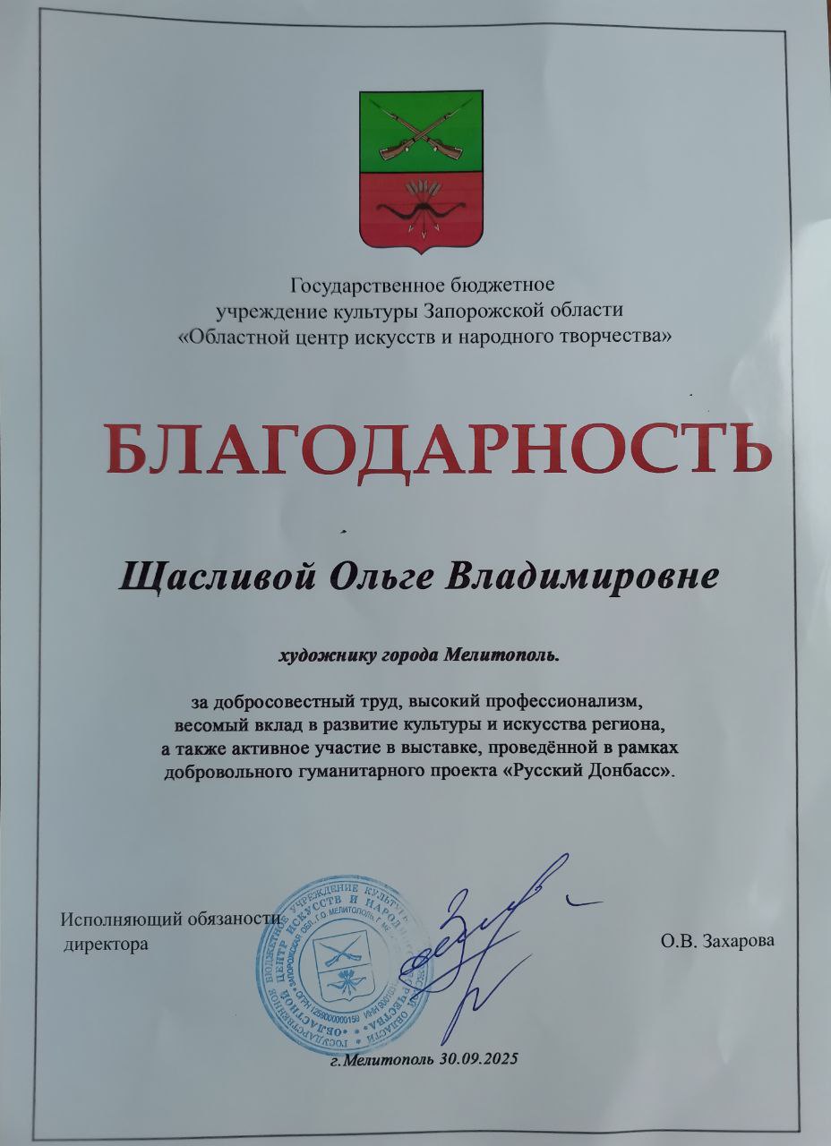 В сентябре 2025 года в Мелитополе на базе Областного центра искусств и народного творчества состоялся Фестиваль православной культуры, организованный гуманитарным проектом «Русский Донбасс».