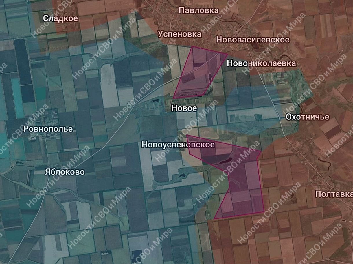 «На Днепропетровском направлении российские войска захватили населенные пункты Успеновка (самый крупный укреплённый узел обороны ВСУ на левобережье реки Янчур) и Сладкое на стыке Запорожской и Днепропетровской областейПлощадь продвижения ВС РФ...