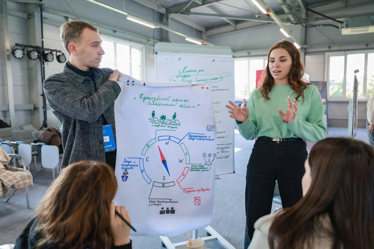 Утро началось с ключевого практического блока — доработки и презентации общественных проектов. Команды под руководством Евгения Шелкового и Дениса Рабе превратили свои идеи в проработанные концепции с четкими целями, задачами и первыми шагами. Участники научились не только генерировать идеи, но и грамотно их упаковывать.