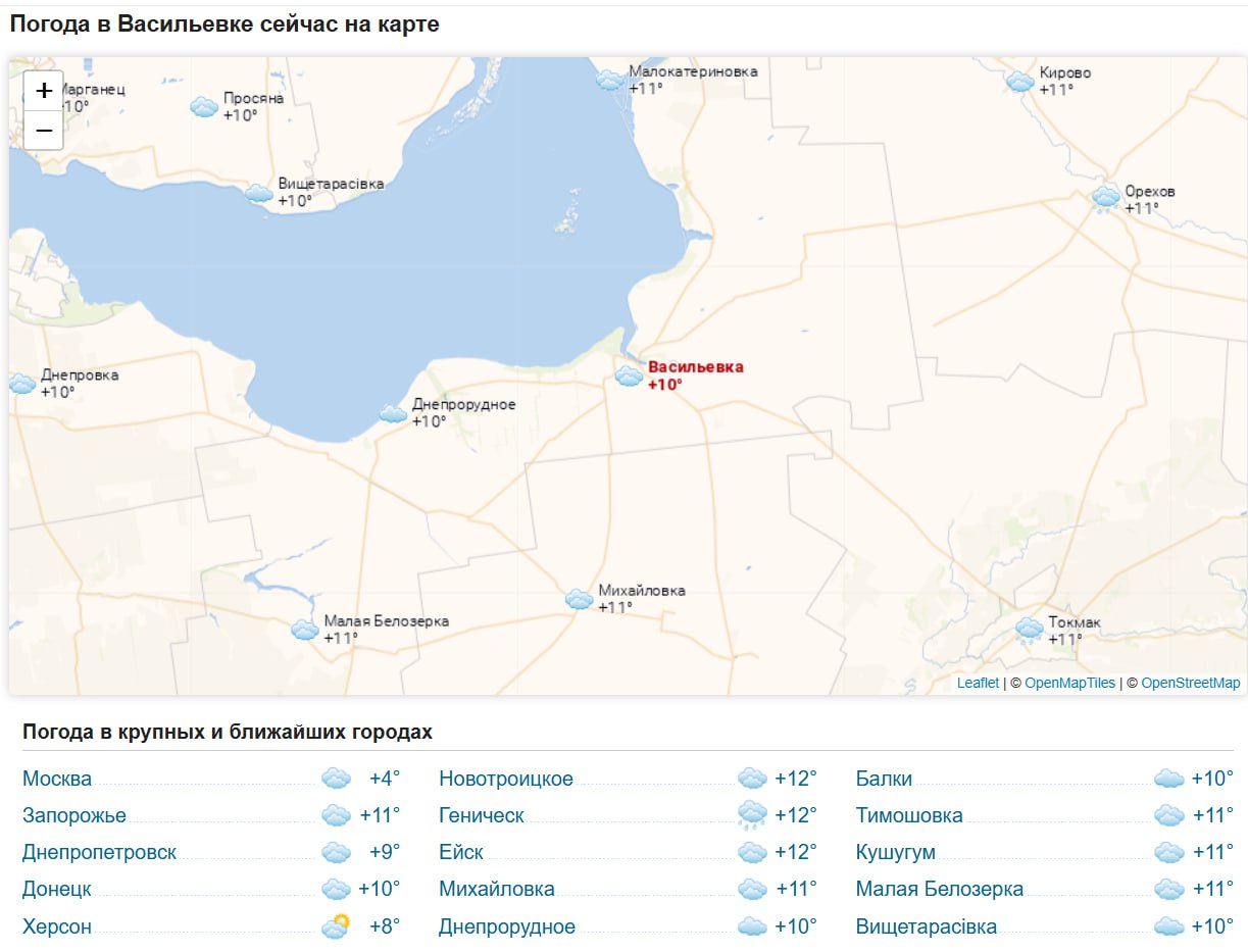 Сегодня в регионе преобладает дождливая погода: в Мелитополе и Токмаке +10°C с дождем, в Бердянске +11°C с дождем, а в Энергодаре и Каменке-Днепровской +10°C пасмурно без осадков.Смотрите За!ТВ в Telegram и ВК