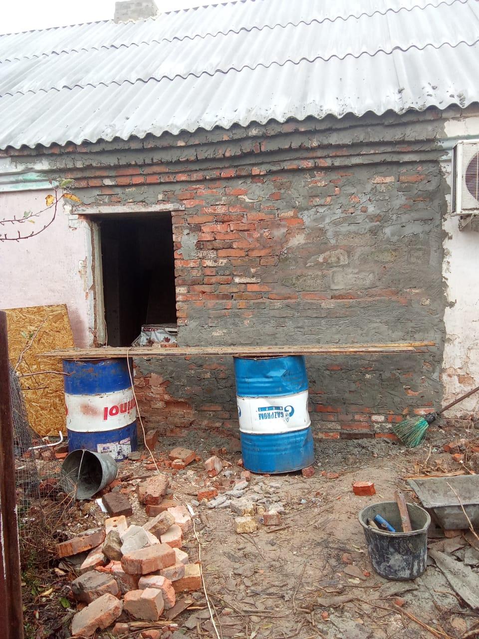 Аварийно-восстановительная бригада из Республики Ингушетия выполнила кладку пролома в стене частного жилого дома, пострадавшего в результате обстрела Молочанска со стороны ВСУ.