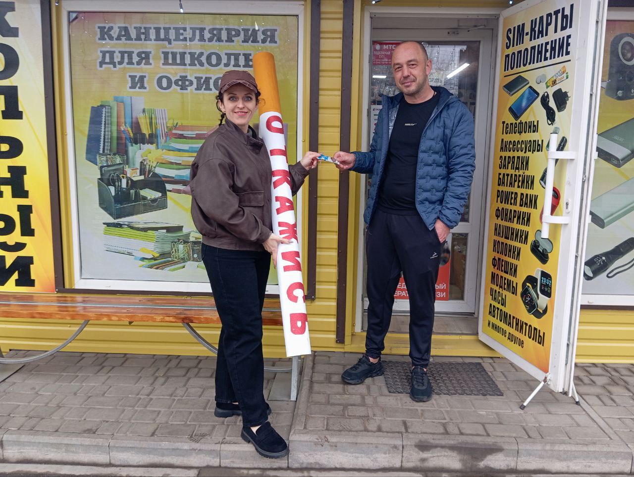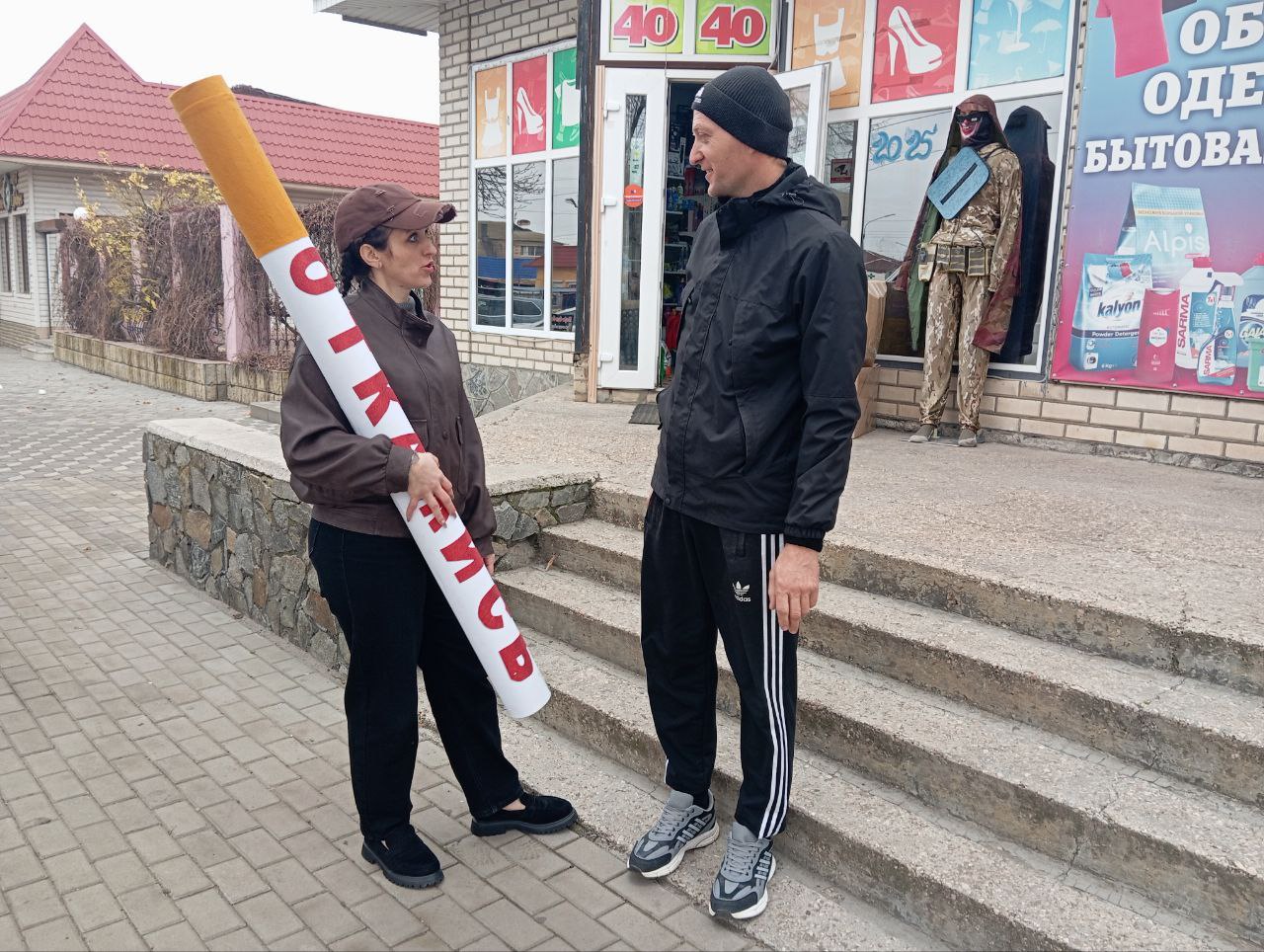 В преддверии Международного дня отказа от курения библиотекари Приазовской центральной библиотеки провели уличную акцию. Они задавали прохожим вопросы о вреде курения, а за каждый правильный ответ участники получали сладкий приз.