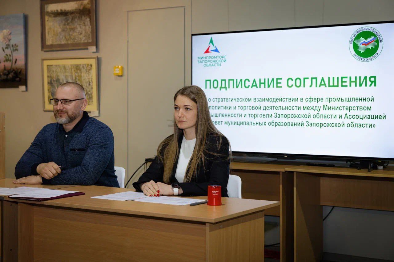 Ассоциация «Совет муниципальных образований Запорожской области» и Министерство промышленности и торговли Запорожской области подписали соглашение о сотрудничестве в области промышленной политики и торговых процессов.