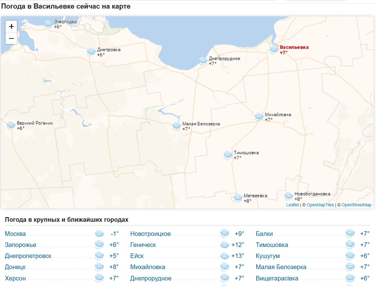 Погода 19 ноября 2025 года в крупных и ближайших к Васильевке городах и населённых пунктах
