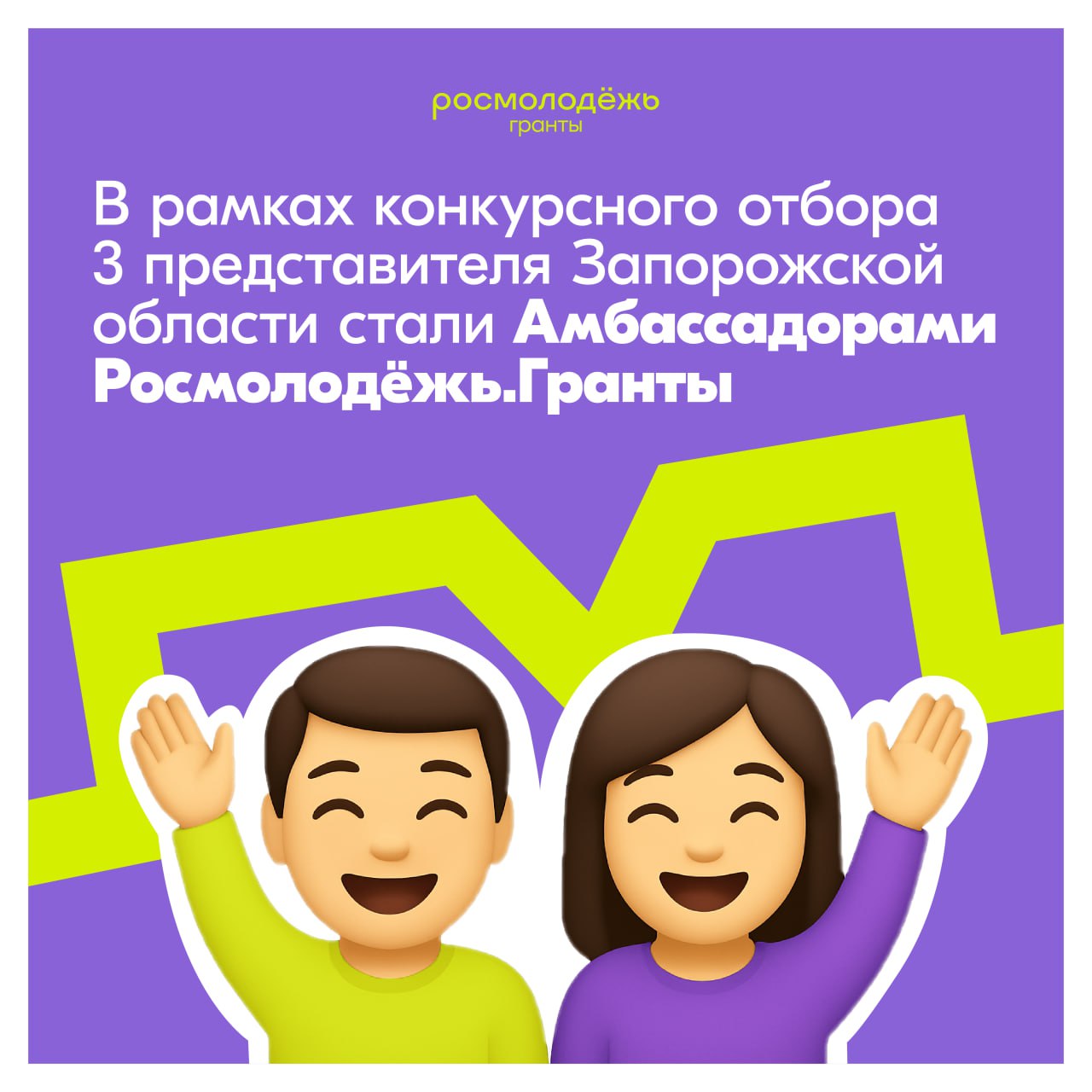 В этом сезоне к команде Росмолодёжь.Гранты присоединились 100 новых амбассадоров из 54 регионов нашей страны, среди которых 3 представителя Запорожской области!
