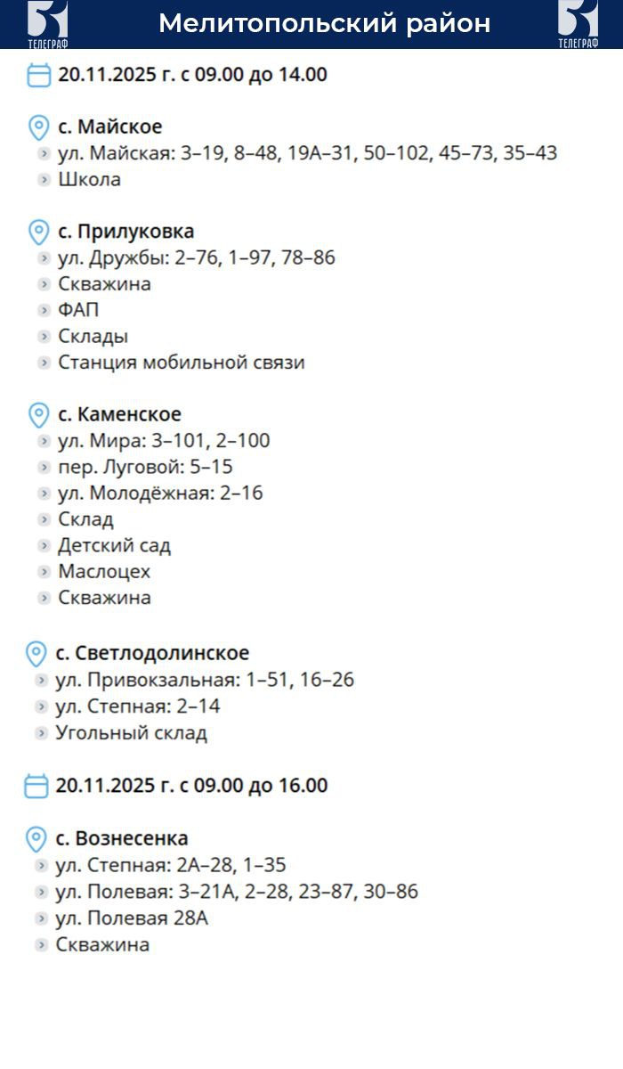 График планового отключения электроэнергии на 20 ноября.