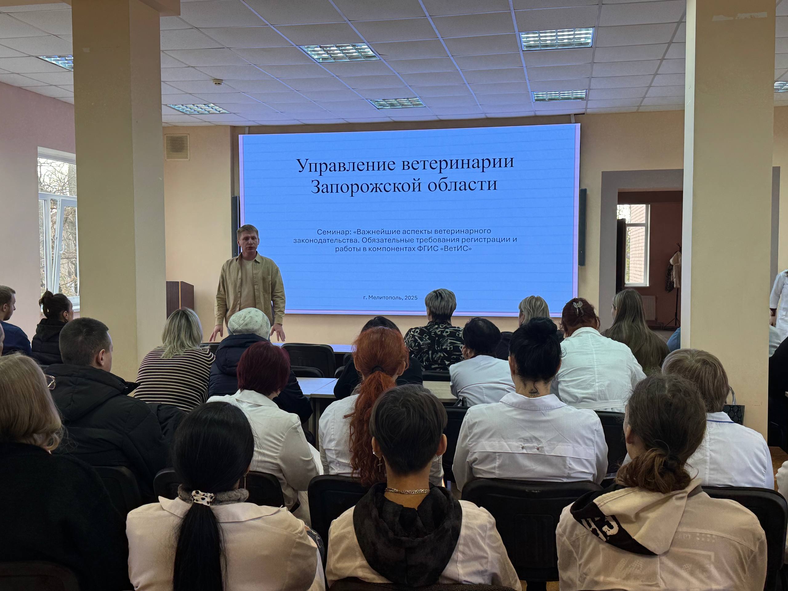 В Мелитополе на базе Васильевского колледжа прошёл обучающий семинар «Ветеринария в цифре: Хорриот и Меркурий». Мероприятие собрало представителей Министерства АПК, специалистов хозяйств и предприятий, а также студентов колледжа. Спикером семинара выступил представитель Управления ветеринарии региона, который подробно рассказал о работе федеральной государственной информационной системы и её ключевых компонентах.