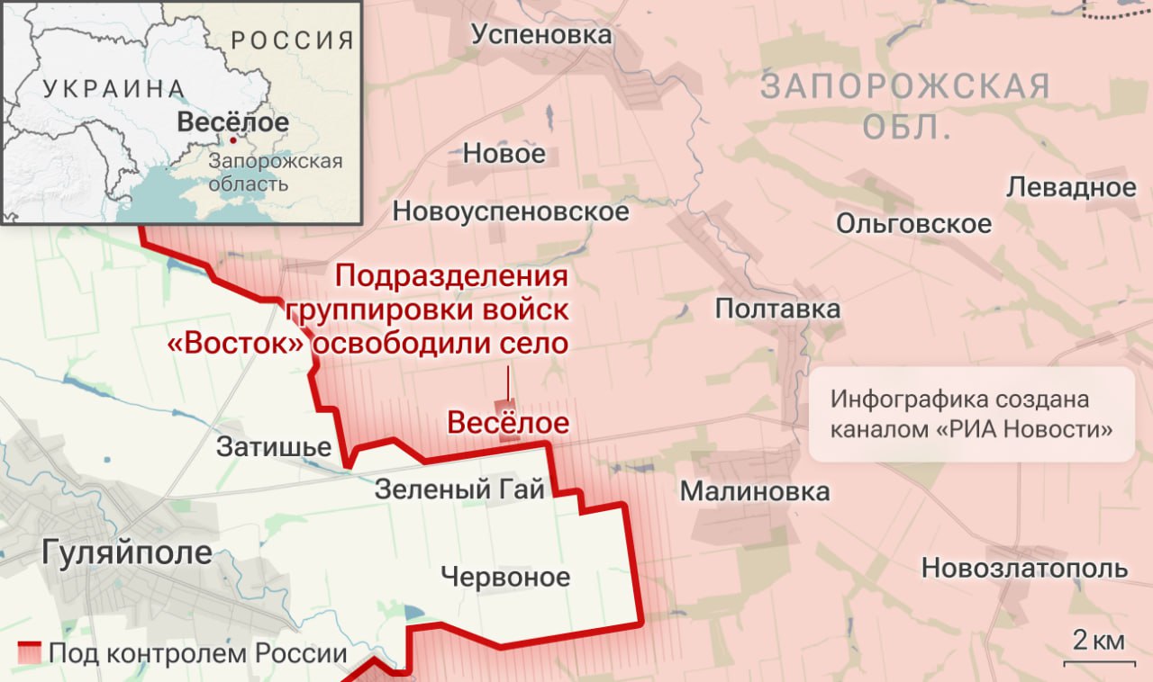 ВС России освободили Веселое в Запорожской области, сообщили в Минобороны.